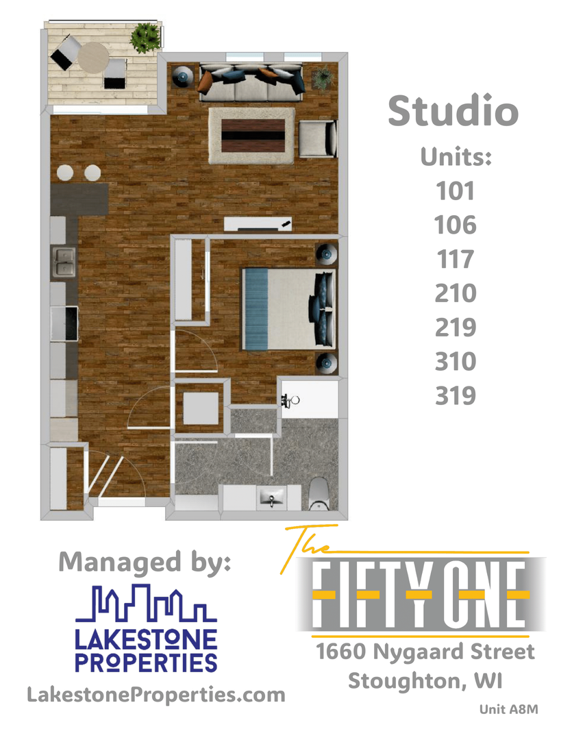Brand New Studio units located on the third floor in Stoughton. This beautiful pet-friendly property features stylish interior and exterior finishes with spacious unique floor plans. Most units come with underground parking, in-unit washer & dryer, and a private balcony or patio. Each unit is equipped with stainless steel appliances, luxury vinyl plank flooring throughout unit, and granite countertops. Beautiful, vaulted ceilings are exclusive to the third floor. The community facilities include a fitness center, a large party room with a kitchen area and a pool table. There is also an outdoor seating area and gas grilling stations.