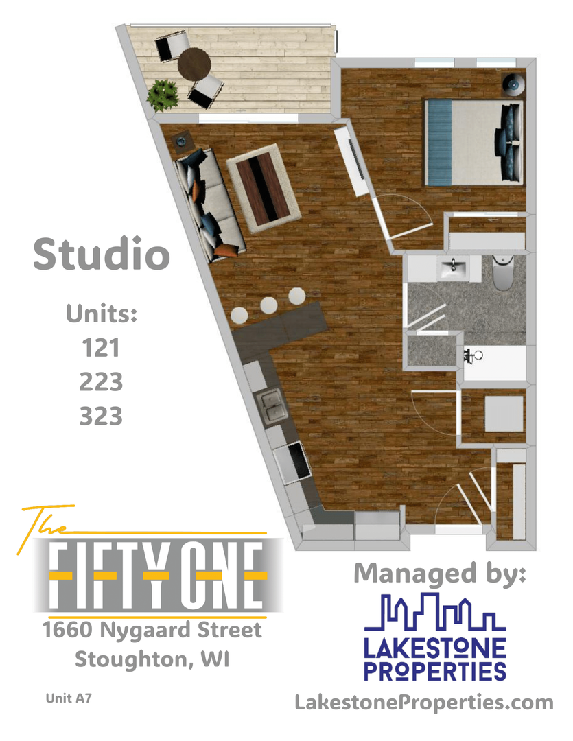 BRAND NEW BUILDING: Studio units on the third floor with vaulted ceilings in Stoughton!! New Construction Incentive: 1st month's rent free with a signed 12 month lease starting by December 1, 2025!!